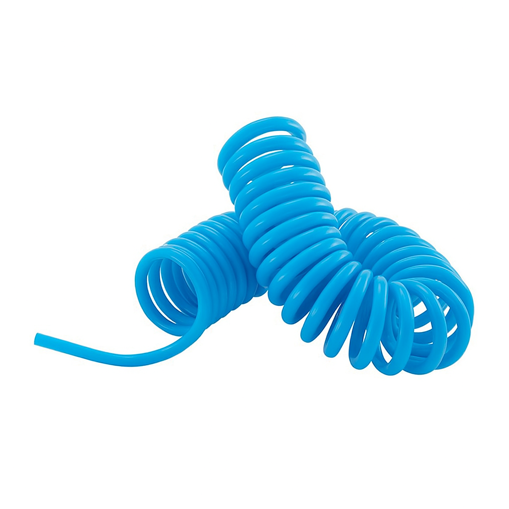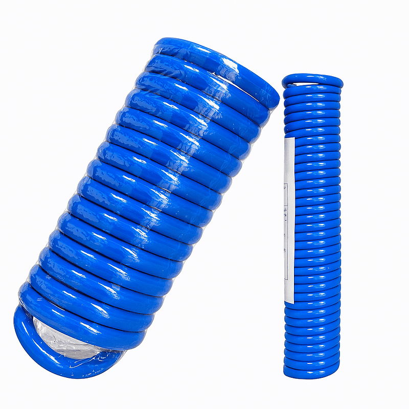 La manguera en espiral, también conocida como manguera resortada, es una solución de alta flexibilidad para la conducción de aire comprimido y agua en sistemas neumáticos, hidráulicos o de riego. Su diseño retráctil automático evita enredos y mejora la organización en talleres, fábricas y entornos industriales exigentes.