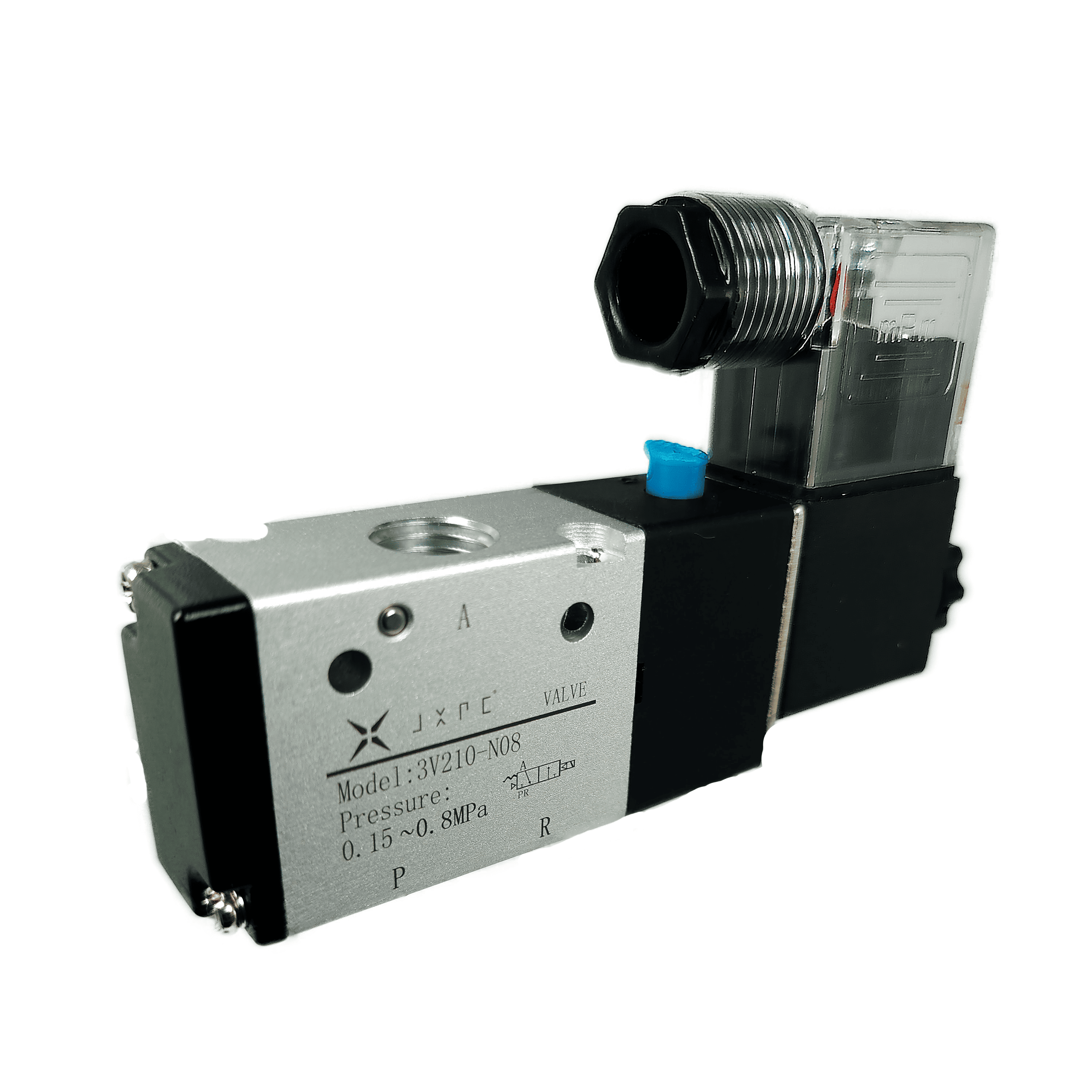 Consulta la ficha técnica completa de la electroválvula 3/2 bobina sencilla en nuestra página web, con todos los detalles de voltaje, flujo, instalación y compatibilidades.