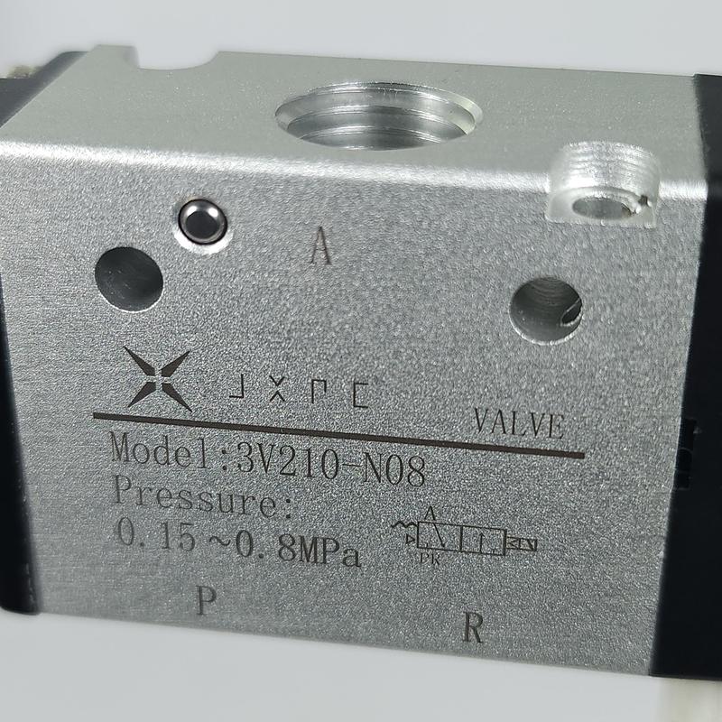 Este tipo de válvula 3/2 neumática cuenta con tres puertos y dos posiciones. Al ser activada por una bobina sencilla, conmuta el flujo de aire entre los puertos, permitiendo o bloqueando el paso según la necesidad del sistema. Cuando se interrumpe la corriente, la válvula regresa a su posición de reposo mediante un resorte interno.