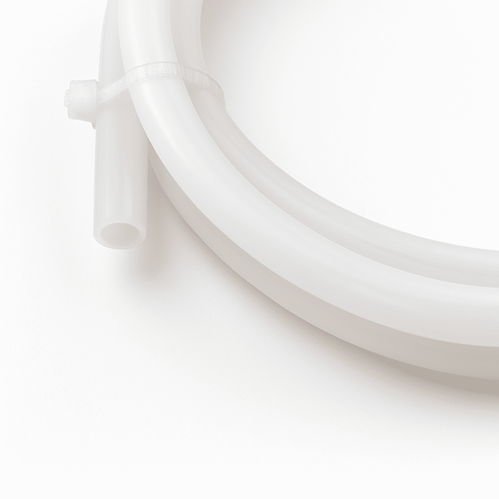 La manguera de teflón, también conocida como manguera de PTFE (politetrafluoroetileno), es el estándar de la industria cuando se requiere máxima resistencia química, térmica y mecánica. Este tipo de tubing es ideal para aplicaciones en la industria farmacéutica, cosmética, química, alimentaria y médica, donde se necesita transportar fluidos agresivos, esterilizados o altamente puros sin riesgo de contaminación.
