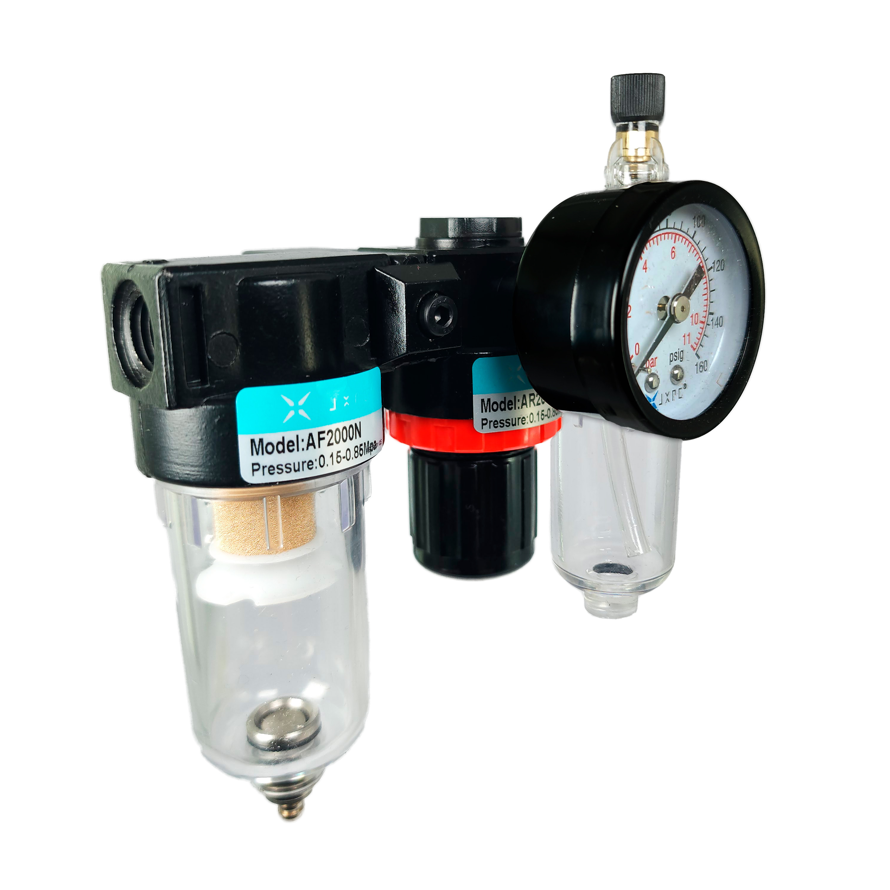 La unidad de mantenimiento neumática A/B, también conocida como FRL (Filtro, Regulador y Lubricador), es un componente esencial en sistemas de aire comprimido. Esta versión económica y liviana, sin comprometer funcionalidad, es ideal para aplicaciones estándar donde se requiere eficiencia, confiabilidad y buen precio. Su misión: preparar el aire antes de que llegue a tus herramientas neumáticas, eliminando impurezas, regulando la presión y aplicando una microdosificación de lubricante.